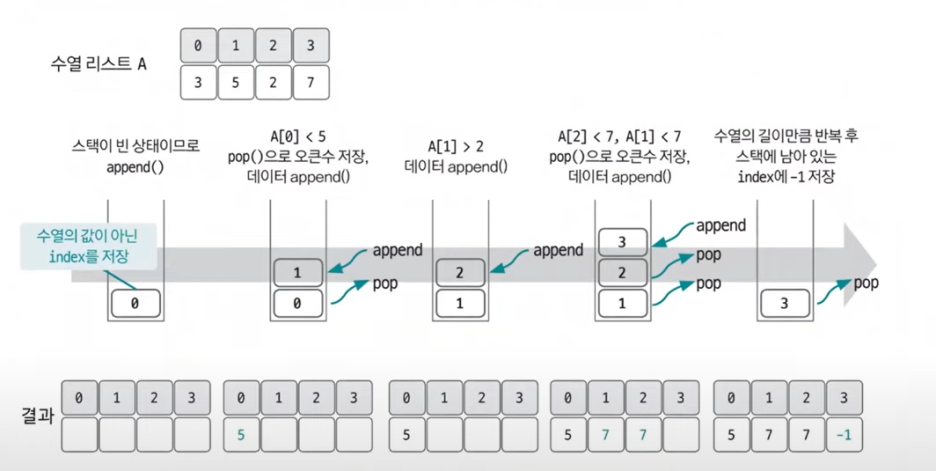 이 아이디어에 따라 스택으로 오큰수를 구현하면 이렇다.