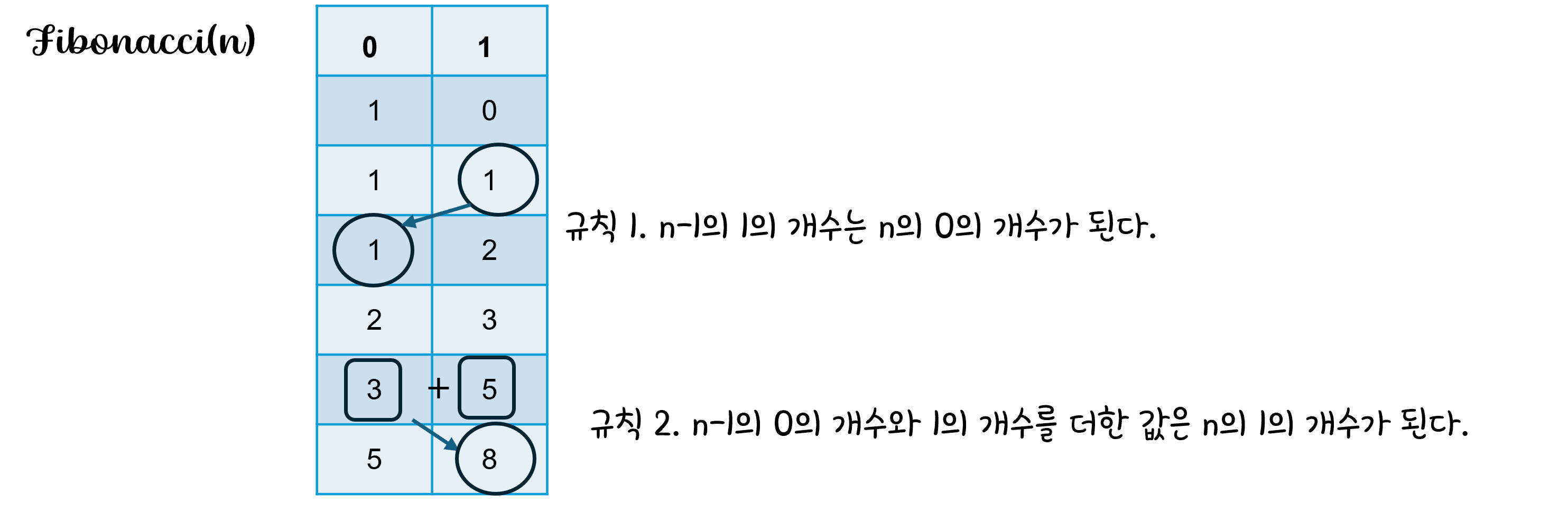 fibonacci(n)을 구할 때, 0의 개수와 1의 개수의 규칙은 이 2가지다.