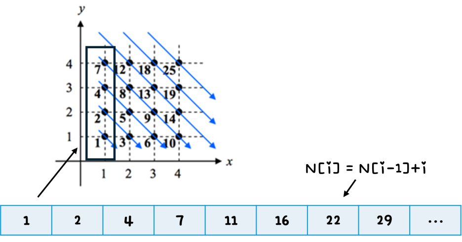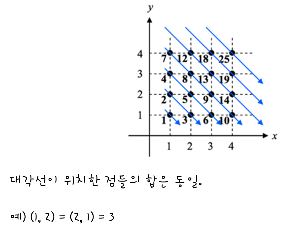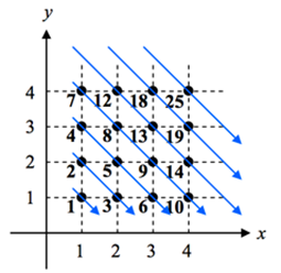 위 그림과 같이 대각선 순서로 점에 수를 붙인다.