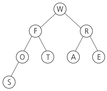 주어진 트리를 in-order, 중위 순회해 각 노드를 읽었을 때 나오는 단어를 구하는 문제.